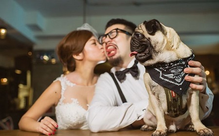 Жених и невеста готовы поделиться угощениями со своим новым другом.