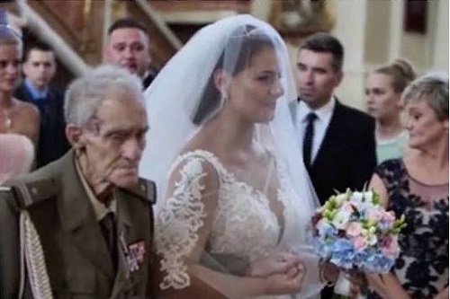 В Польше невесту отвел к алтарю ее дедушка, ветеран Второй мировой войны. Спустя два дня после церемонии он умер.