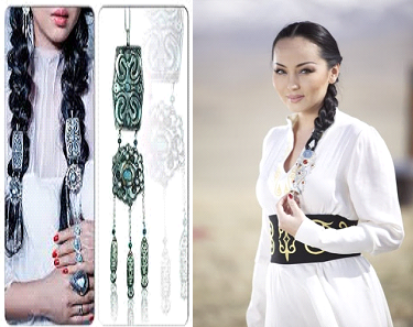 Украшения в казахском национальном стиле добавят особого шика - крупные серьги, браслеты.