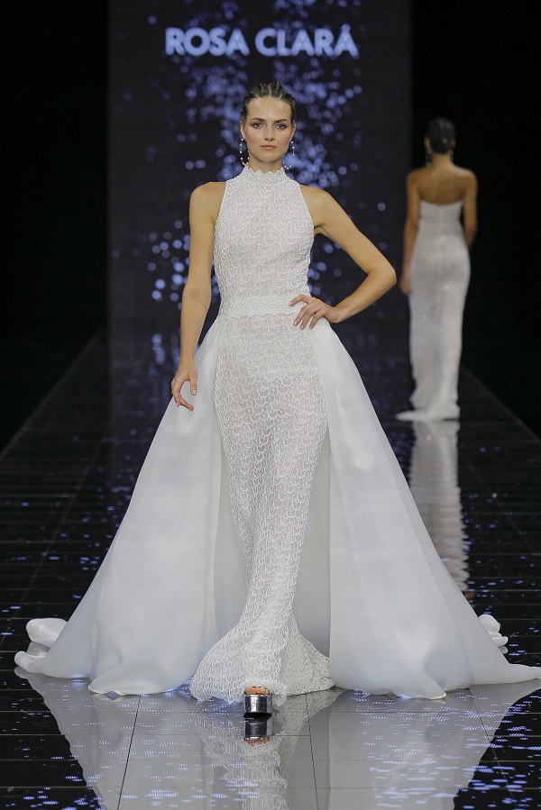 Изысканные ткани от кутюр, эксклюзивное кружево ручной работы с микробисером, являются главным достоянием коллекции Rosa Clará Couture 2024, состоящей из моделей с чистыми и элегантными линиями, а также универсальных и очень современных предложений, таких как укороченные топы и юбки. Верная элегантному стилю коллекция сезона 2024 включает детали из кружева, расшитого микробисером на талии, а широкие вырезы из кружева Шантильи придают невесте эксклюзивный и современный вид, типичный для Высокой моды. Гламур золотых 20-х годов захватывает бренд, демонстрируя его на подиуме 21 века, покоряя духом роскоши в виде боа из перьев и сотуаров с жемчугом.
