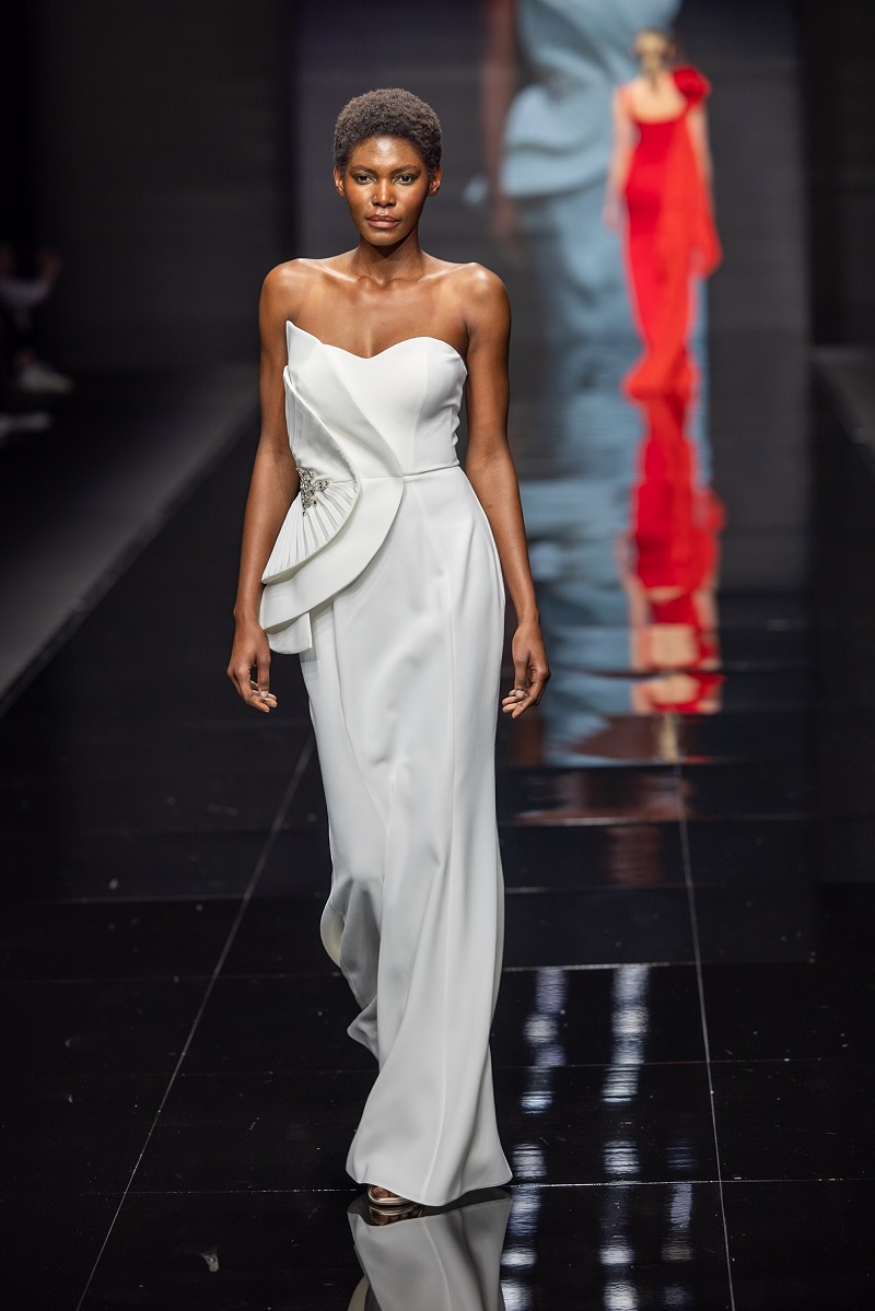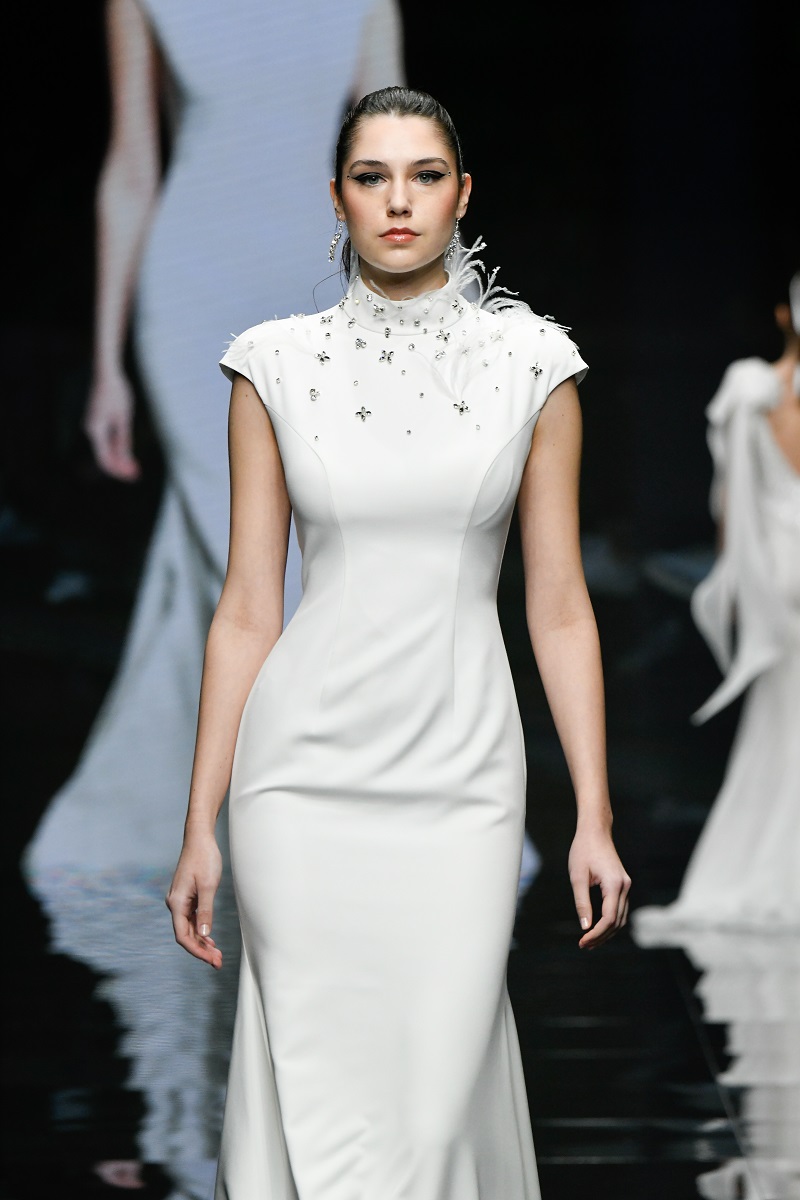 Свадебная коллекция 2026 года представлена великолепными платьями подчеркивающими женскую фигуру, включает свободно ниспадающие юбки, кружева с замысловатыми деталями и видимые корсетные элементы. Силуэты варьируются от минималистичных платьев-колонн до драматических бальных платьев и силуэтов «русалка».