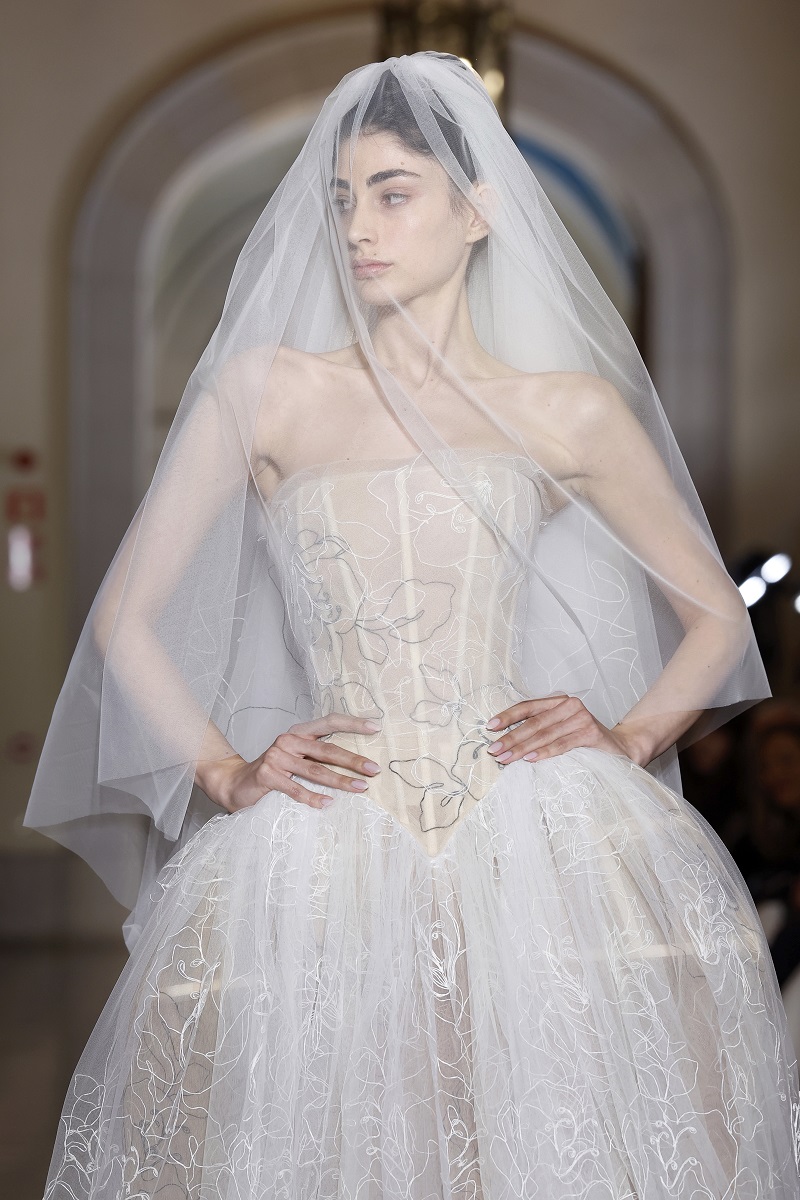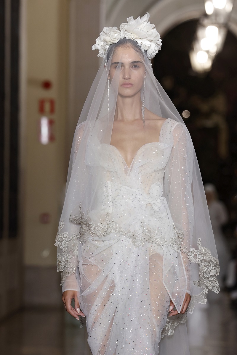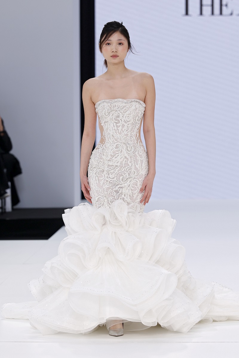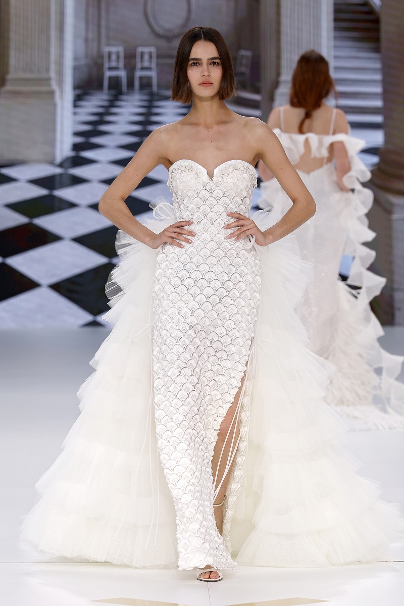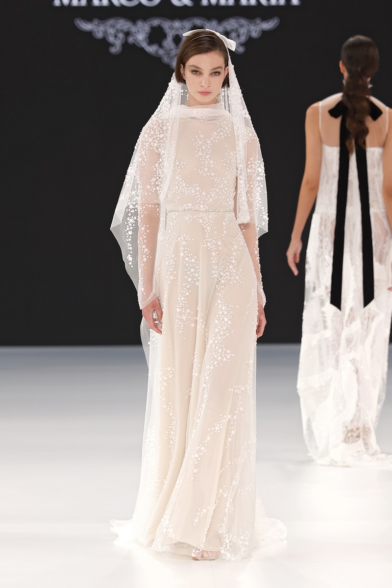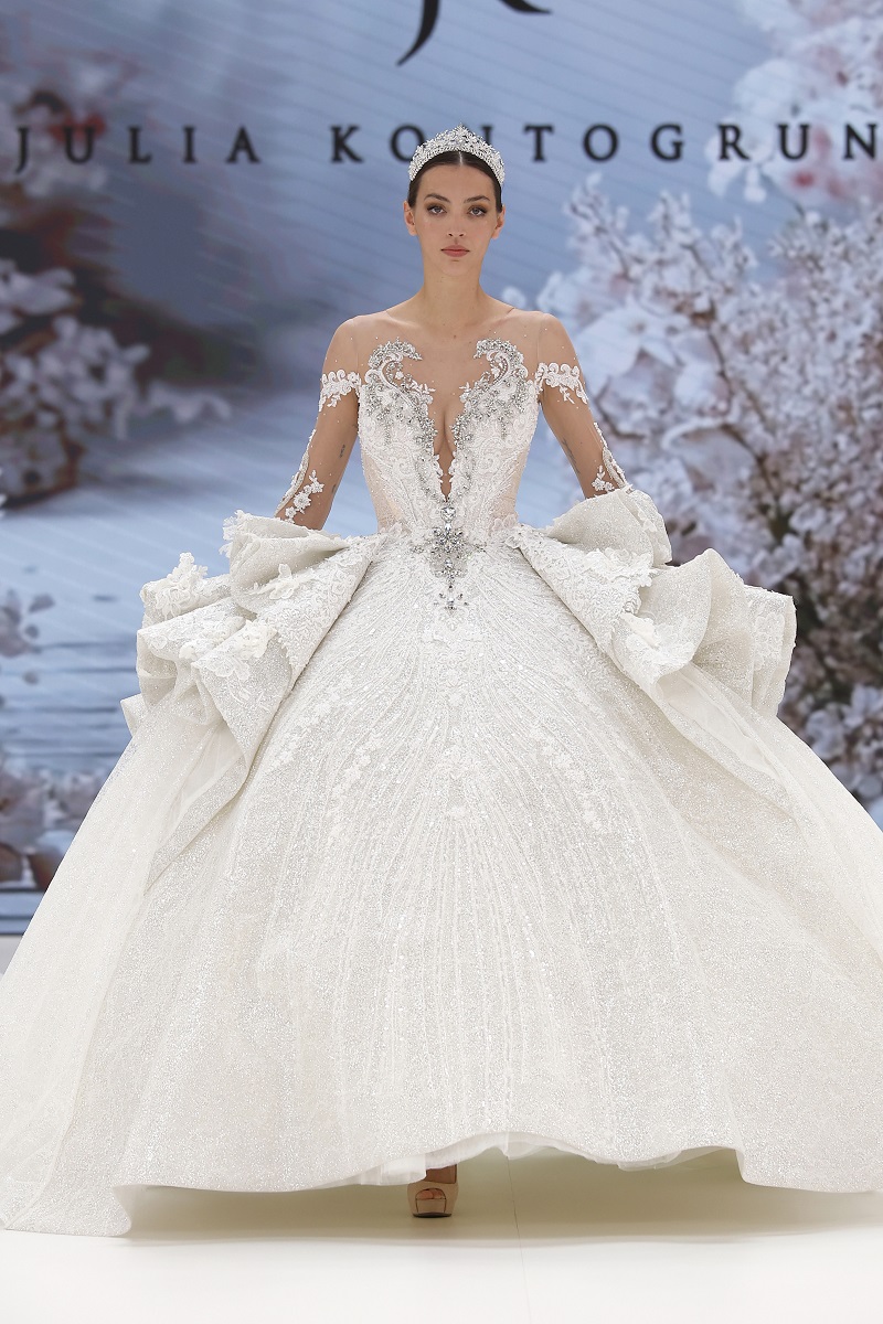 Силуэты свадебных платьев смягчаются, становятся более современными и молодежными, с оттенком смелости в образах, которые подчеркивают многослойность, большие объемы, прозрачность, блеск и плавные линии.