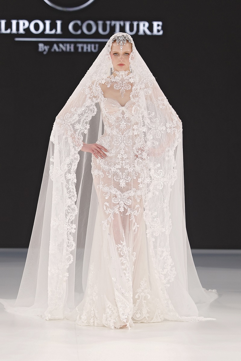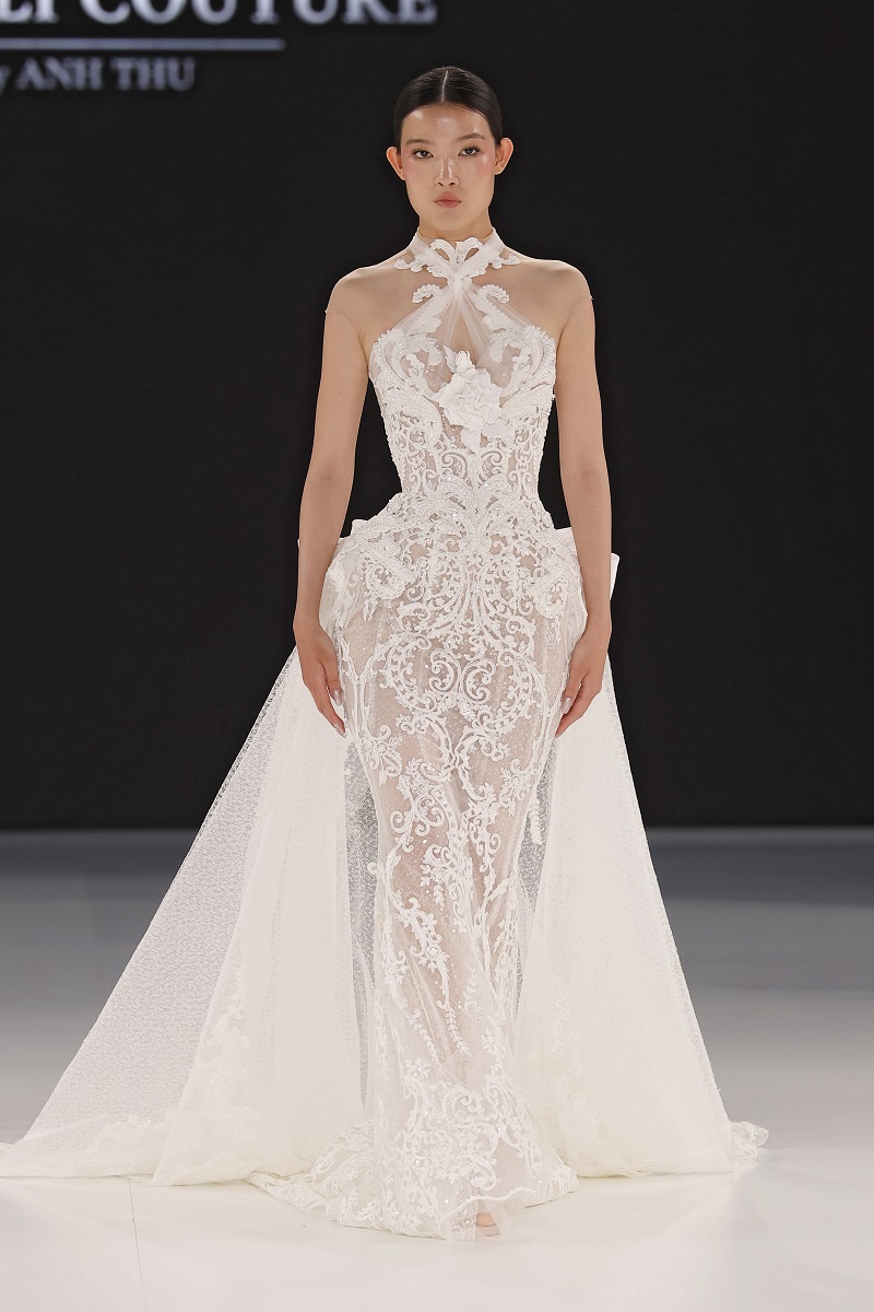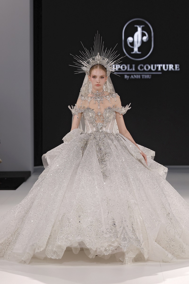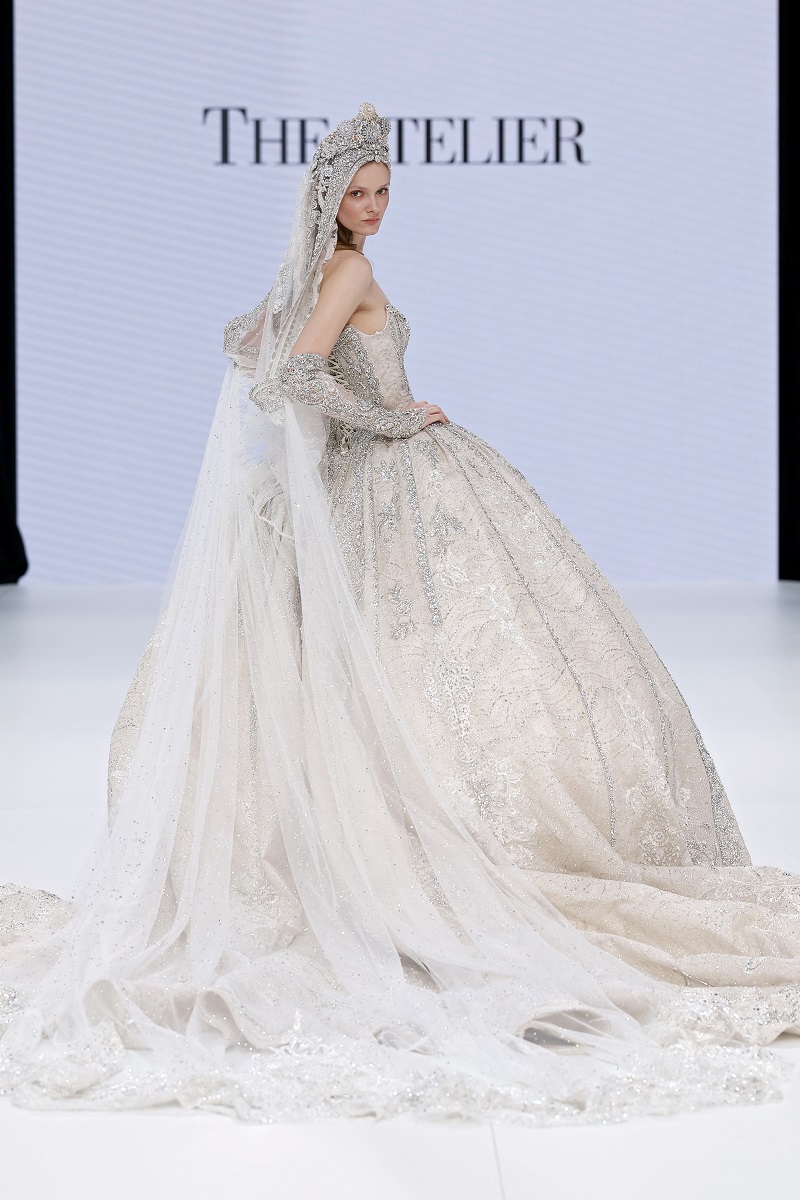 Роскошные платья, раскрывающие бесконечные тайны небесной фантазии, уносят нас за пределы возможного, исследуя уникальные, фантастические и бесконечные мечты о будущем. Вдохновленные ледяным сиянием северного сияния, платья украшены мерцающими кристаллами и замысловатой вышивкой бисером, словно звездная пыль в ночном небе, что подчеркивает их сияющее великолепие.