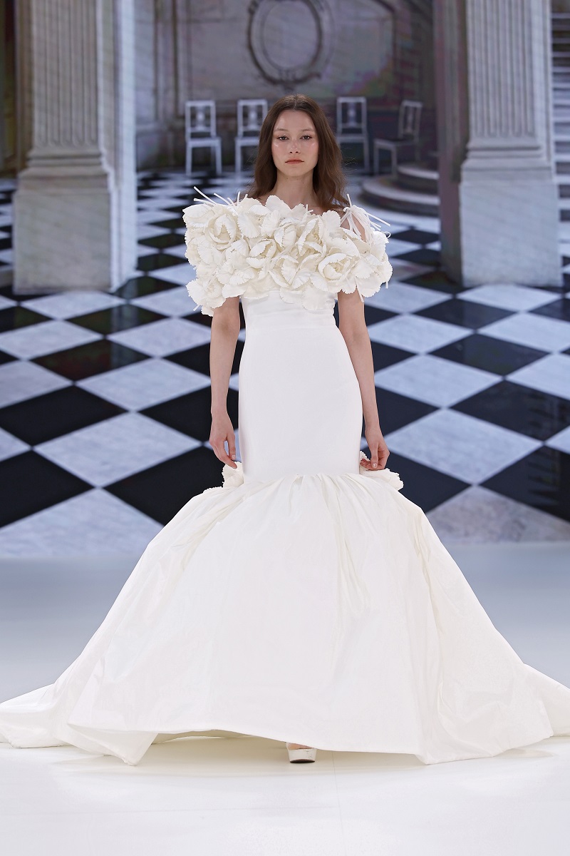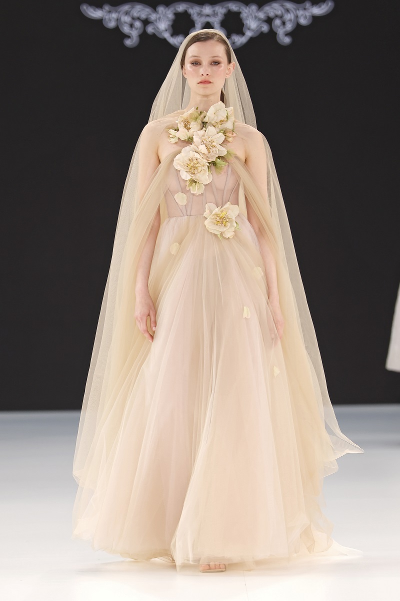 Свадебная коллекция обращена к принту с розами, вдохновленному акварелями ботаника XVIII века Пьера-Жозефа Редуте. В коллекции добавлены цветы апельсина, как символ чистоты и красоты; сдержанные и многослойные, с тюлем – нежные, романтичные. Легчайшая органза, много кружева и бледно-розовый дюшес делают каждое платье шедевром.