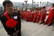 Пары готовятся к массовой церемонии бракосочетания на 11-ом Азиатском фестивале свадебной культуры в Ченду.