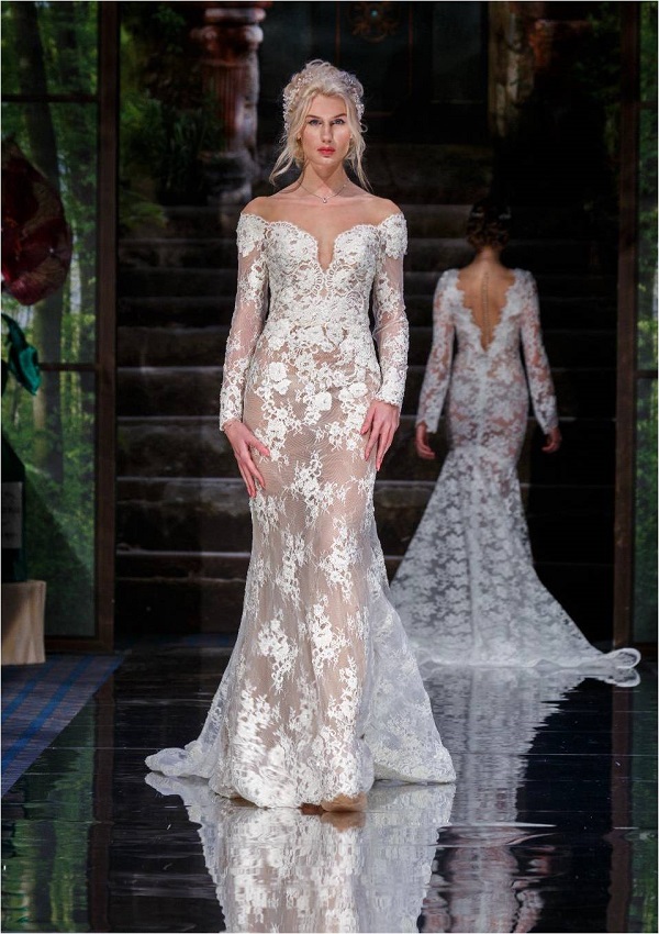 В качестве отделки Ellie Saab использует вышивку жемчугом и блестками, создавая ощущение, будто к платью прикасались волшебной палочкой.