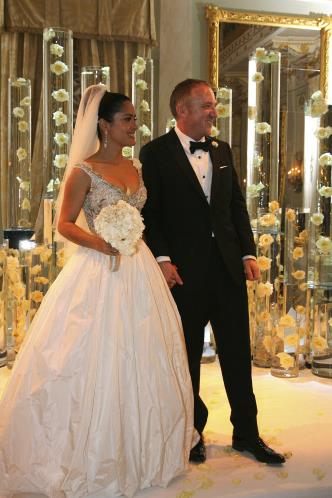 В 2009 году одна из самых красивых латиноамериканских актрис Сальма Хайек вышла замуж за миллиардера Франсуа Анри-Пино в потрясающем кружевном платье от модного дома Balenciaga, образ дополнял аккуратный высокий пучок с фатой, букет их орхидей и кристаллов.