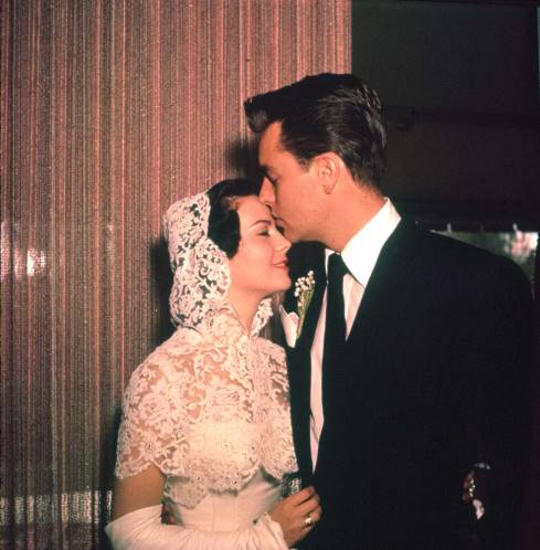 В 1957 году одна из красивейших актрис столетия Натали Вуд выходила замуж за Роберта Вагнера в белом коктейльном платье и кружевной накидке.
