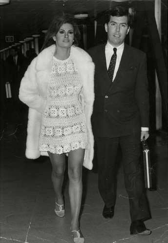 Актриса Ракель Уелч, секс-символ своего времени (помните фильм 'Миллион лет до нашей эры'?), выходила замуж за продюсера Патрика Кертиса в коротком вязаном платье, накинув белую шубку.