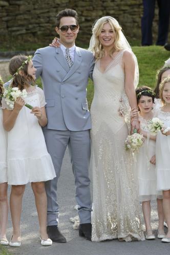 Супермодель Кейт Мосс вышла замуж за музыканта The Kills Джейми Хинса в июле 2011 года в платье от John Galliano - потрясающее творение знаменитого модельного дома, слегка ассиметричное, винтажное, но в духе дизайнера и самой Кейт.