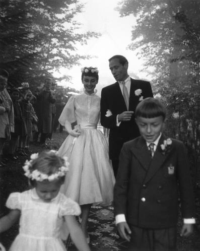 За Мэла Феррера знаменитая актриса Одри Хепберн выходила в ставшее классикой платье от Givenchy, а вместо высоких каблуков выбрала балетки, так любимые ею.