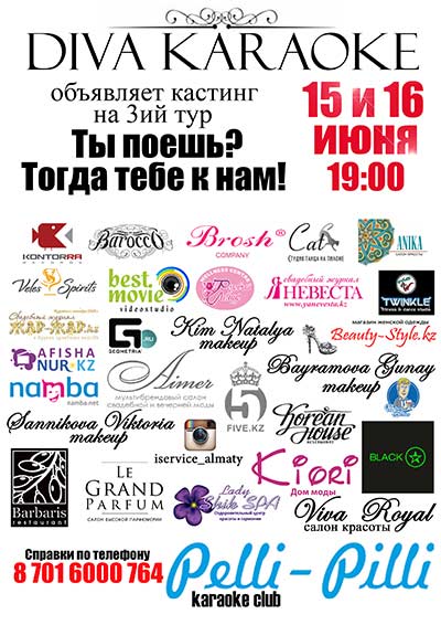 15-16 июня состотся 3 тур конкурса Diva Karaoke в ресторане Pelli-Plilli