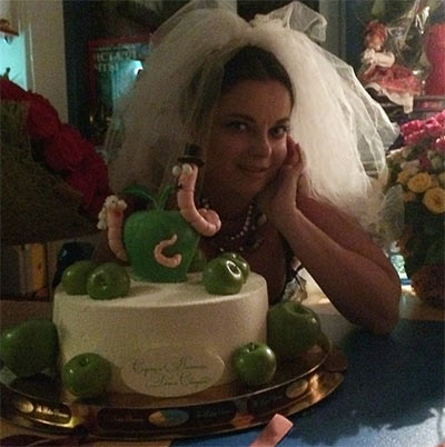 Торт и правда был необычным — на нем были изображены два влюбленных червячка, выползающих из зеленого яблока... Словом, буйству фантазии Наташи Королевой остается только удивляться!