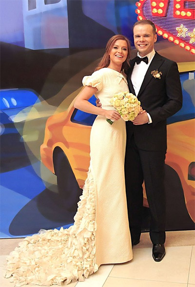 Что касается наряда невесты, то Юля Савичева предпочла довольно лаконичное белое платье от Tony Ward. Фаты у невесты не было, но благодаря женственной прическе образ певицы получился очень нежным и в то же время сдержанным.