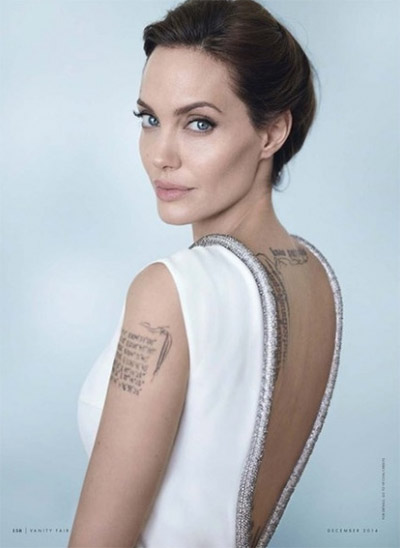 Фотосессиия, выполненная исключительно в светлых тонах, — дело рук Марио Тестино, легендарного фотографа, чей день рождения звезды недавно отметили с размахом. Марио хотел подчеркнуть положительный образ Джоли, поэтому она позирует на белом фоне, в белом платье и с макияжем пастельных оттенков.