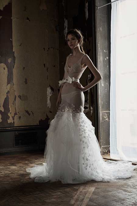 Знаменитые дизайнеры свадебных платьев, среди которых Вера Вогн, Marchesa и Рим Акра, активно используют в своих коллекциях свободные силуэты и прозрачные ткани, создавая соблазнительные образы современной невесты. На смену пышным юбкам и классическим приталенным силуэтам пришли глубокие декольте и прозрачные ткани, под которыми отчетливо просматривается нижнее белье, пишет Daily Mail.
