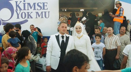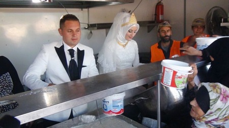 Многие люди в день собственной свадьбы стремятся провести «праздник имени себя», однако одна щедрая пара решила расширить границы своего торжества и поделиться счастьем с окружающими. 24-х летний Фетулла Узумкулоглу и его двадцатилетняя невеста Эсра Полат из Турции решили потратить деньги, предназначавшиеся на свадьбу, на еду для сирийских беженцев. Объединив усилия с представителями турецкой благотворительной организации «Кимсе Йок Му», нарядные молодожены встали за раздаточный прилавок и провели весь день, угощая нуждающихся. К вечеру Фетулле и Эсре удалось накормить около 4000 человек.
