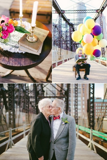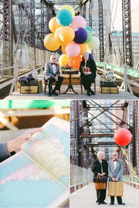«Когда проблемы тянут ко дну, смотри вверх!» - этот девиз хорошо знаком многим из нас по знаменитому мультфильму «Вверх» анимационной студии Pixar. Фотосессия Нины и Грэмпа, семейной пары, прожившей в браке 61 год, - лучшее доказательство того, что все трудности преодолимы. Фотограф Лорен Уэллс (Lauren Wells) к годовщине свадьбы сделала этим очаровательным влюбленным настоящий подарок – тематическую love-story! Да такую, что и молодежь позавидует.