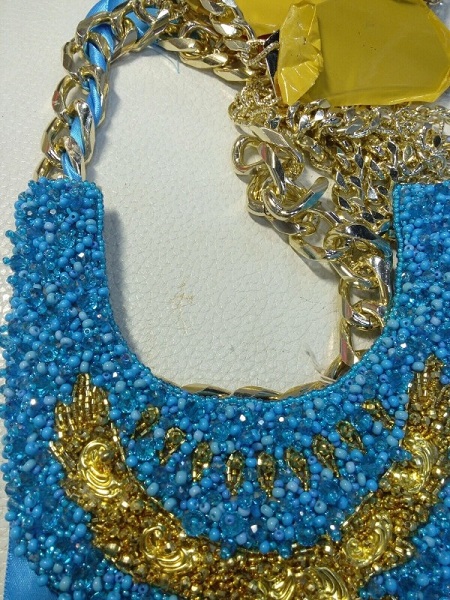 Также для Регины Вандышевой специально было создано уникальное колье, выполненное в тематике казахстанского флага.
