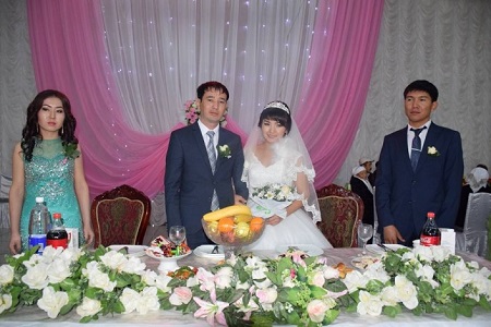 Меирман Сауранбек работает бизнес-тренером в Сайрамском районном центре обслуживания предпринимателей. А его супруга Сания Сейдуалханкызы - преподаватель на факультете экологии в одном из вузов. Пара познакомилась несколько лет назад в одной из частных компаний, где они оба трудились. Однако отношения завязались только спустя некоторое время, когда парень сменил работу. Влюбленные начали встречаться с декабря 2013 года, а в этом году Сауранбек сделал предложение девушке в кафе.