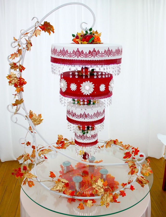 4. Следующий свадебный красный торт на фото бесподобен