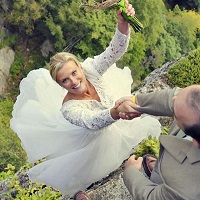 Фотографы из Нью-Гэмпшира Джей и Вики Филбрики снимают молодоженов на отвесных скалах.
