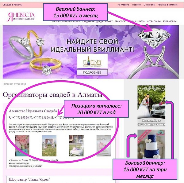 2. Размещение на главной странице сайта + размещение в каталоге: 40 000 KZT в год